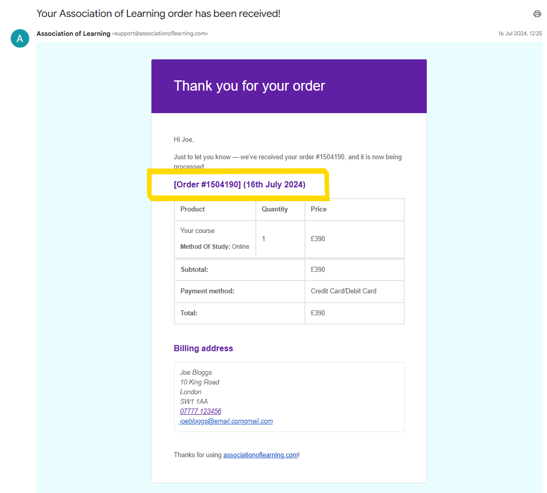 Welcome to Association of Learning! After you have ordered your course, our team will process your enrolment and send out your welcome email. Enrolments are processed within 2 hours (please allow for more time if you have ordered your course outside ...